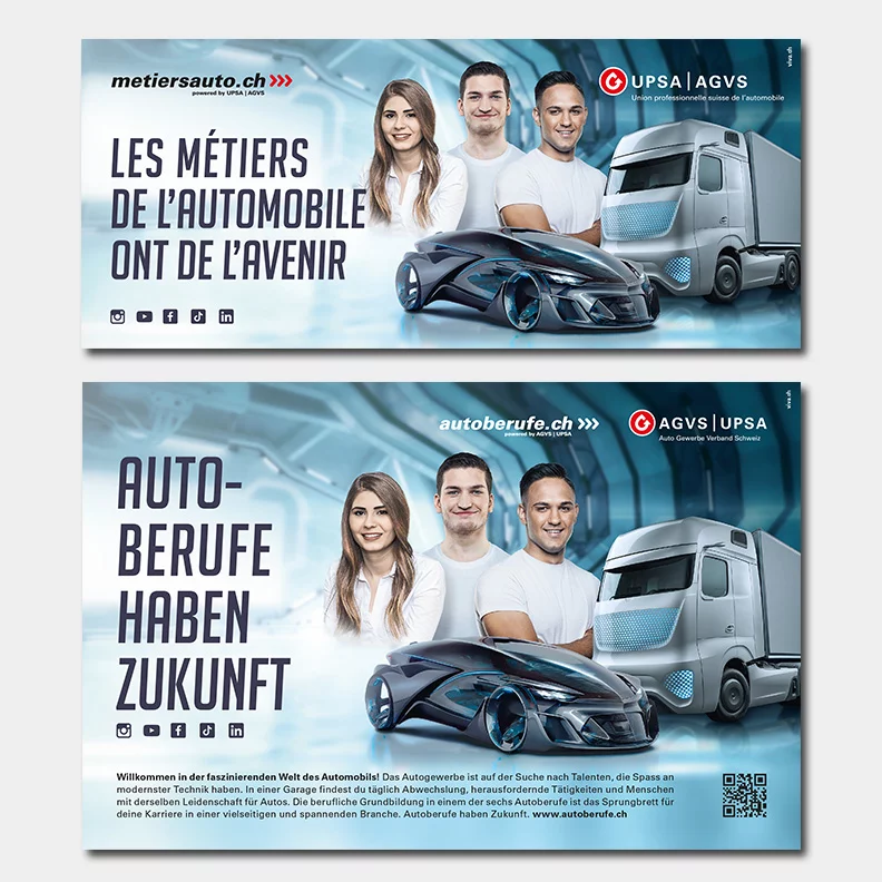 L’UPSA met à la disposition de ses membres différents supports et formats publicitaires. Ils aident notamment les garagistes à inciter les jeunes motivés à se lancer dans un métier automobile.